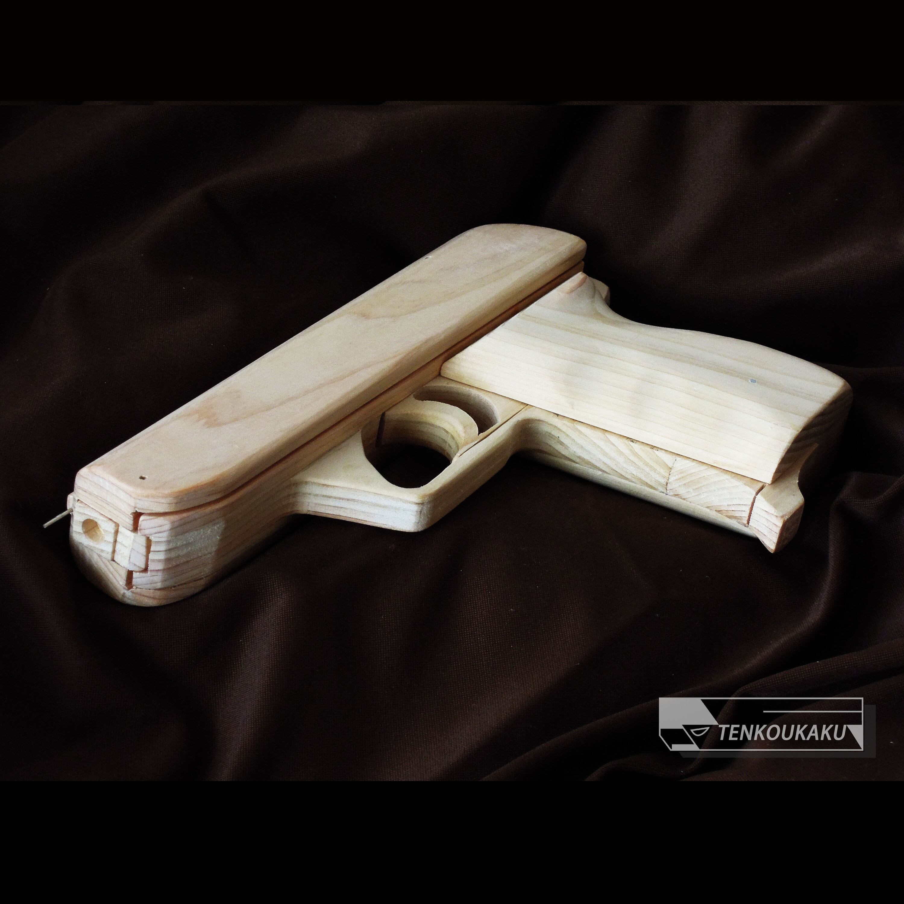 ■ 輪ゴムを発射すると瞬時にスライド部分が後退して ブローバックのような動作をする 連発式輪ゴム銃の製作図等一式